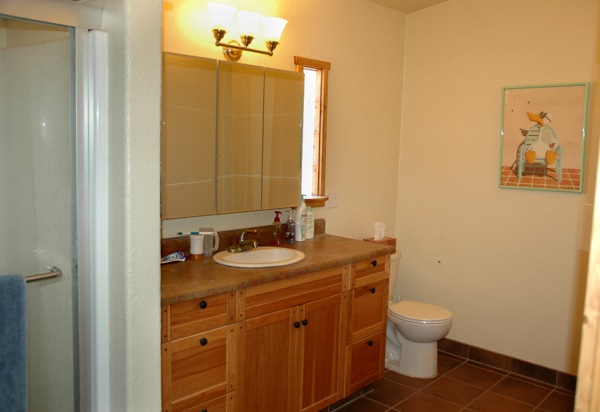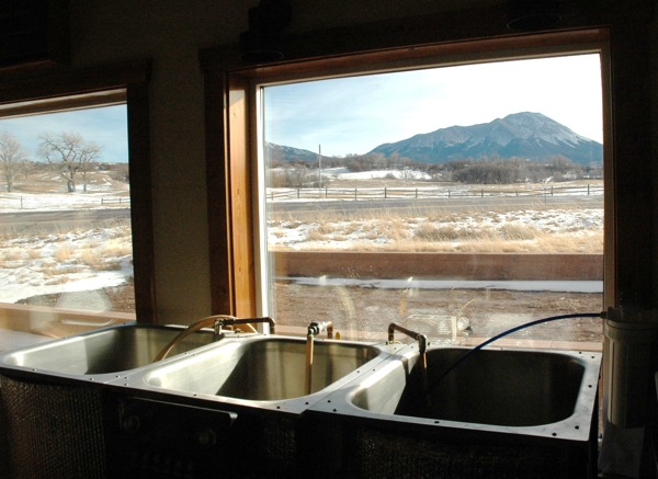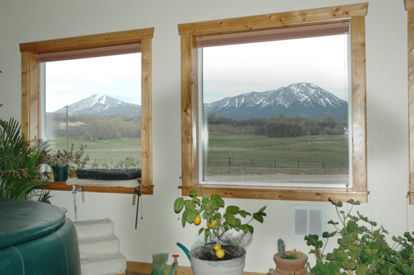 are three panes thick. Hydronic under-floor heat warms both ground and