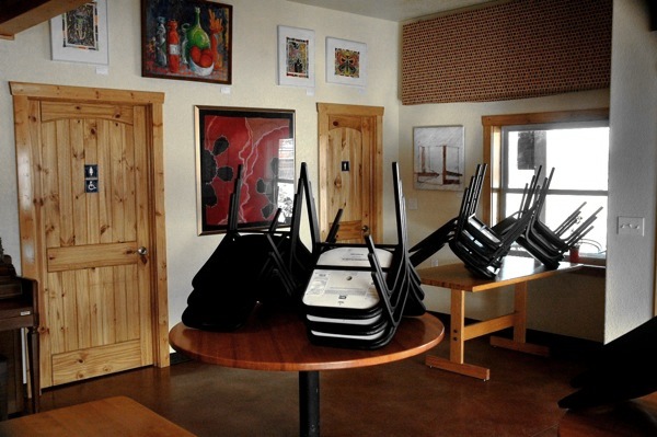 stainless tables, shelving, etc.), dining tables, and a small brewing system