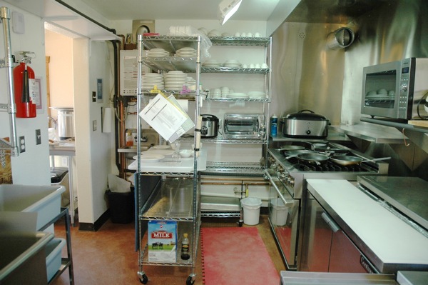 The sale includes commercial kitchen equipment (stove, stainless sinks,